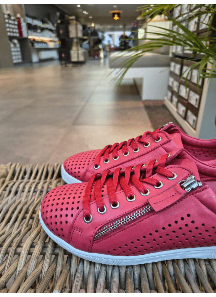 Sneaker in zacht leder geschikt voor steunzolen.