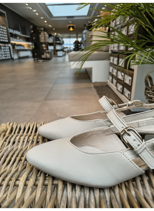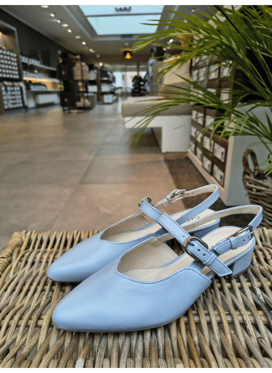 Pump met laag hakje in G-breedte.