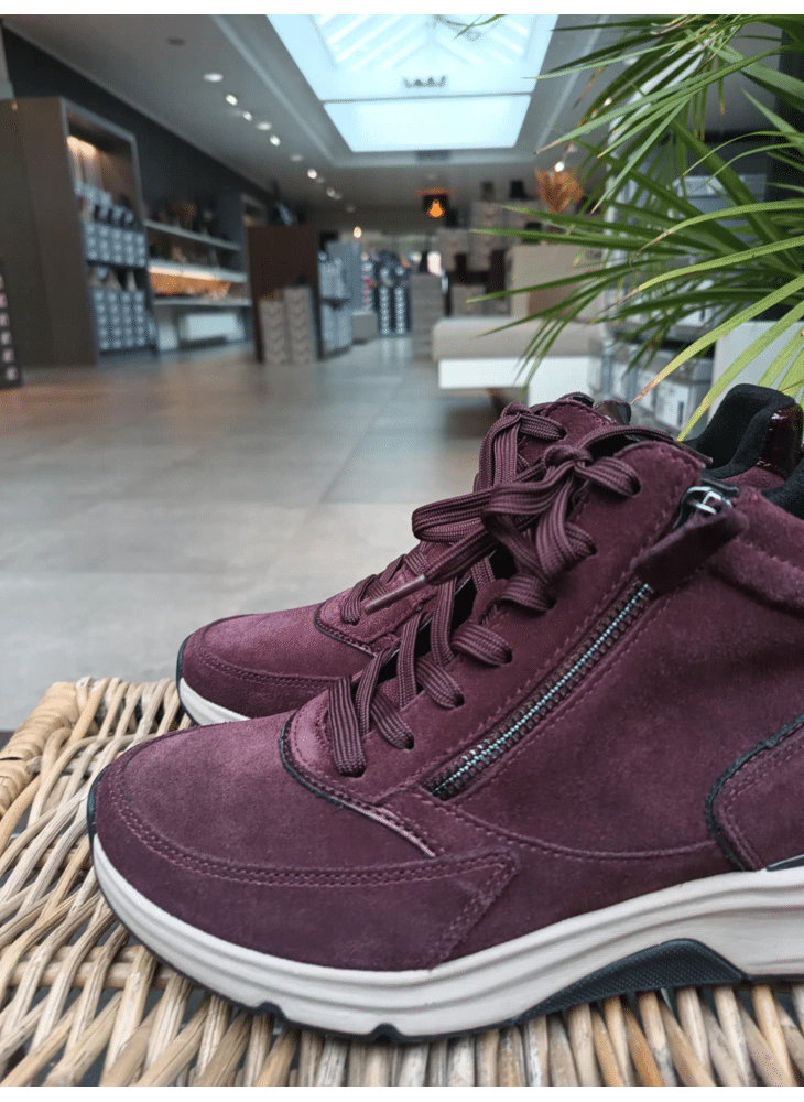 Hoge sneaker met afwikkel zool geschikt voor steunzolen.