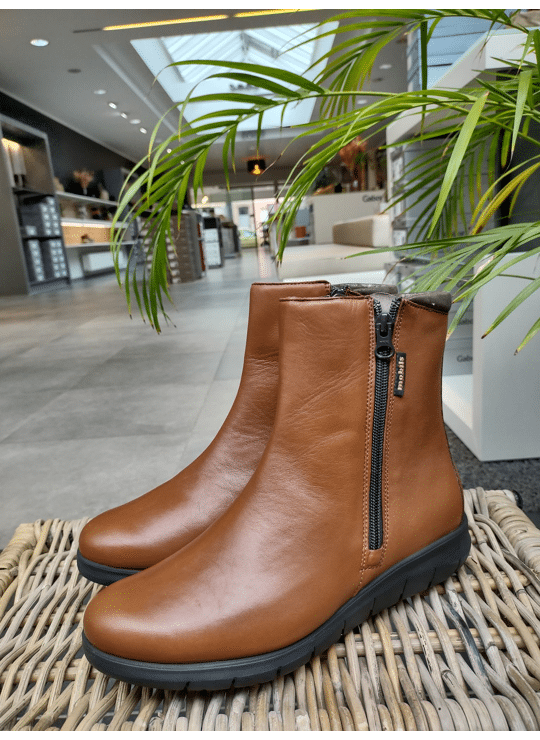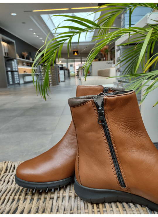 Orthopedische enkellaars met bredere pasvorm en steunzool geschikt.